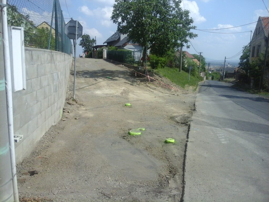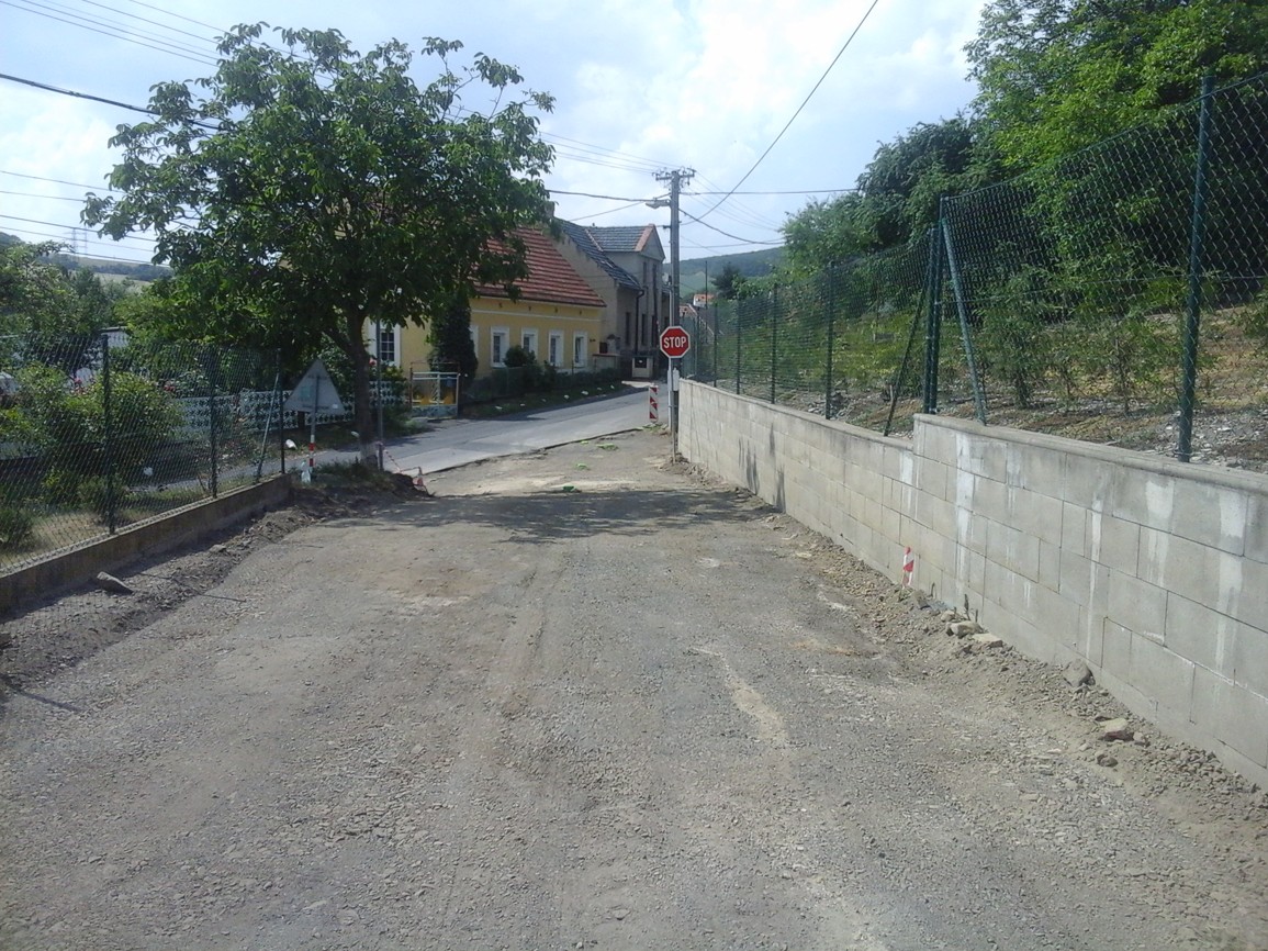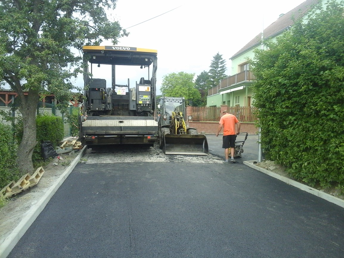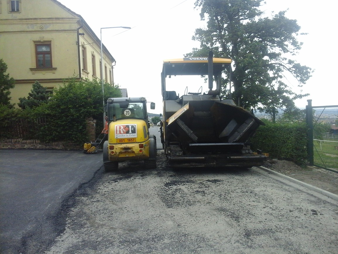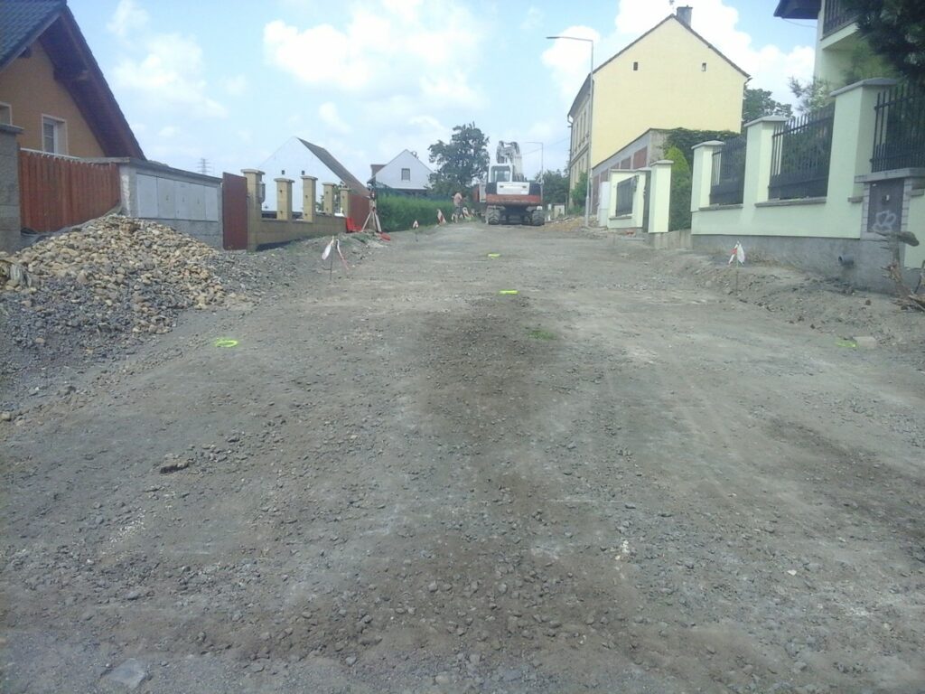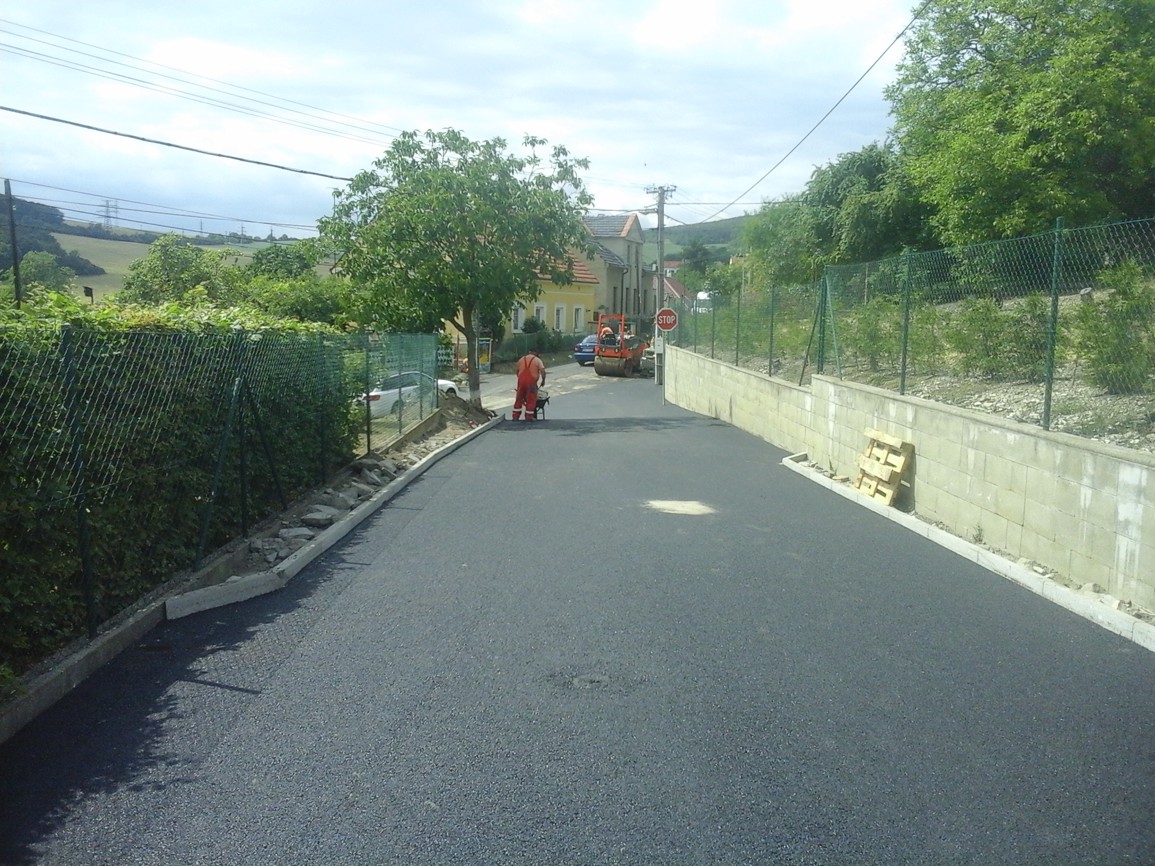 Fotografie prací na rekonstrukci vozovky v obce Miřejovice v roce 2018